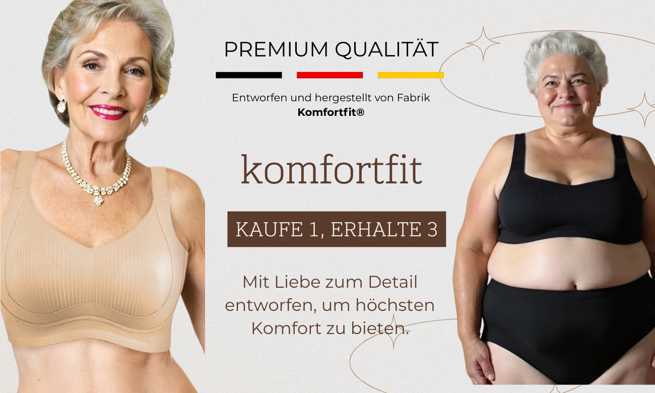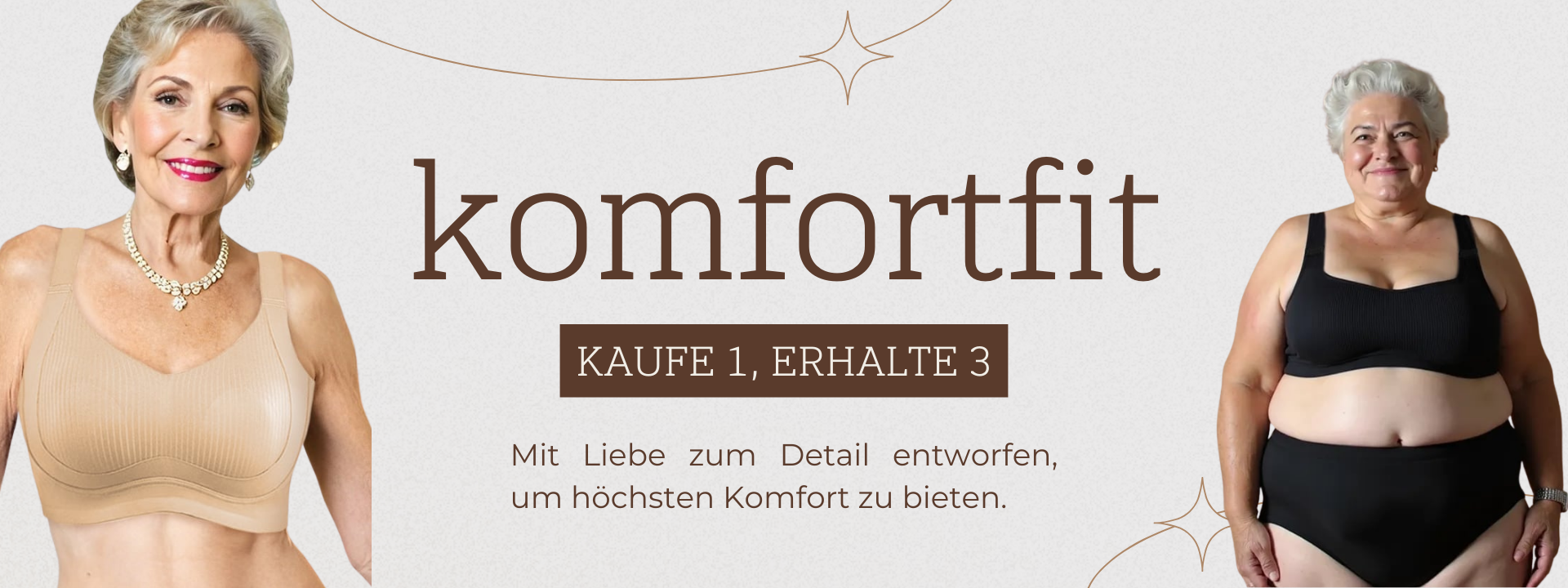 Bei Komfortfit glauben wir, dass jede Frau es verdient, sich wohl, selbstbewusst und stark zu fühlen – jeden Tag. Unsere Mission ist es, absoluten Komfort zu bieten und das Selbstwertgefühl von Frauen jeden Alters zu stärken, mit BHs, die moderne Technologie, intelligente Passform und ein Design vereinen, das jede Körperform unterstreicht. Entworfen und hergestellt von Komfortfit.
